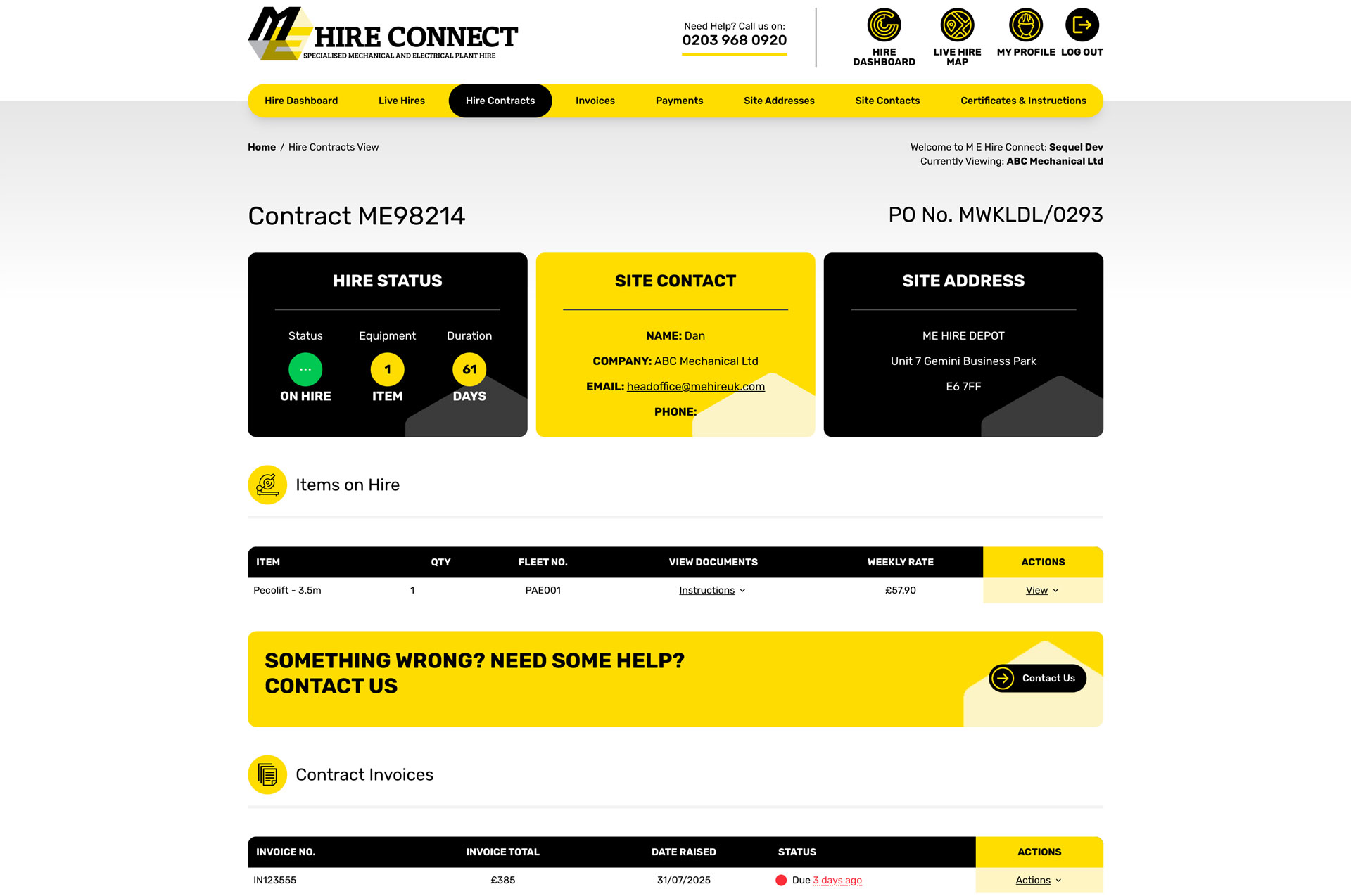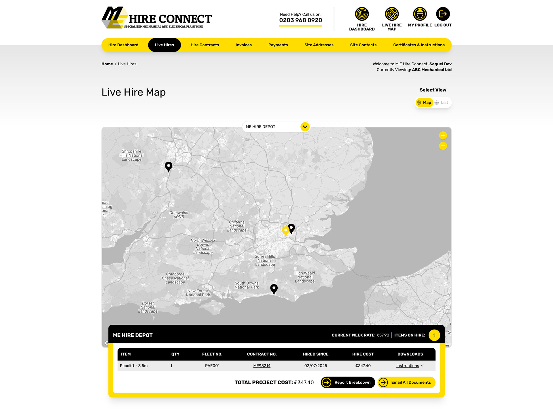 M E Hire Customer Portal