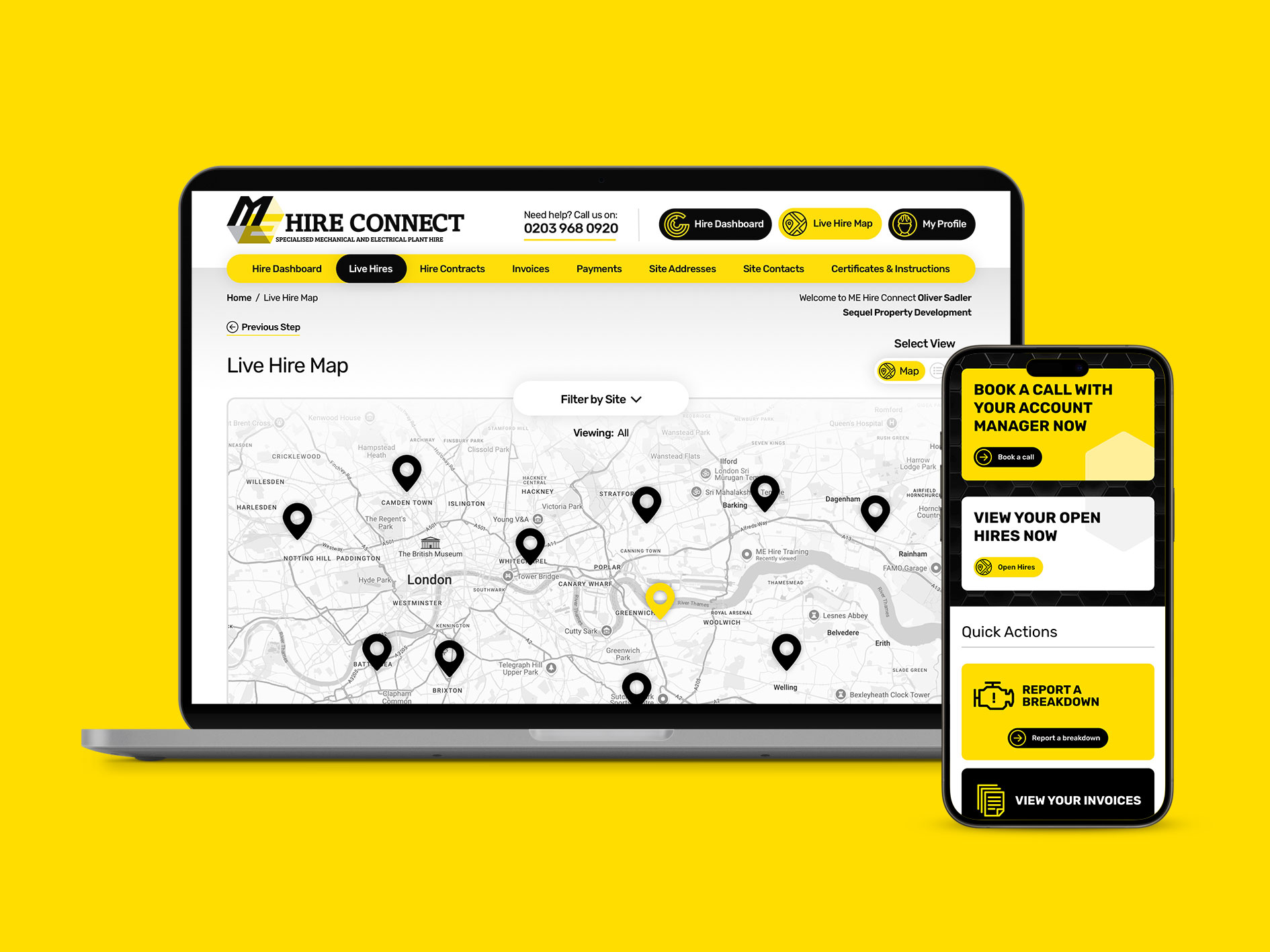 A bespoke customer hire portal for M E Hire, designed to streamline operations, provide real-time updates to customers, and cut down on manual admin for their busy team.